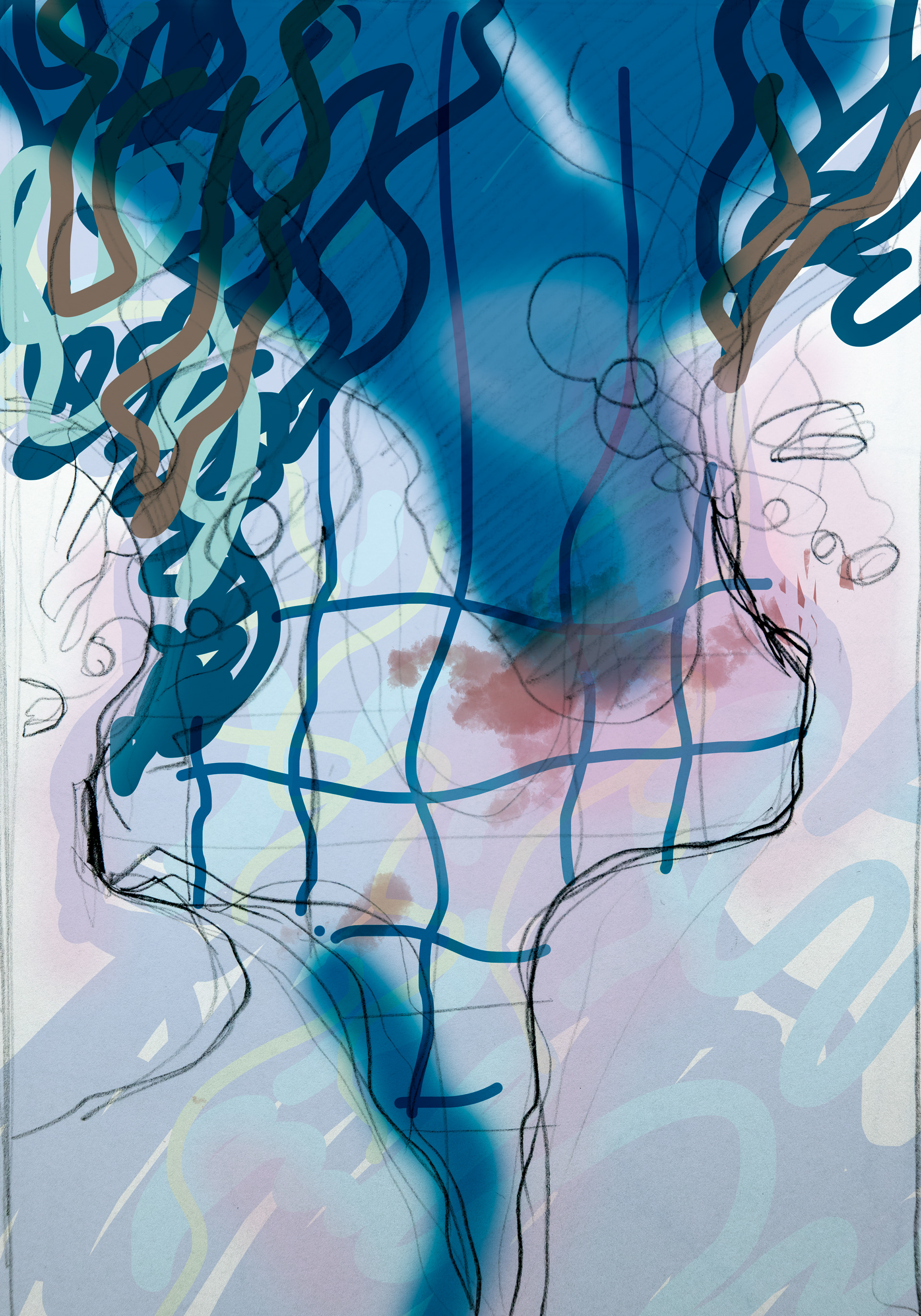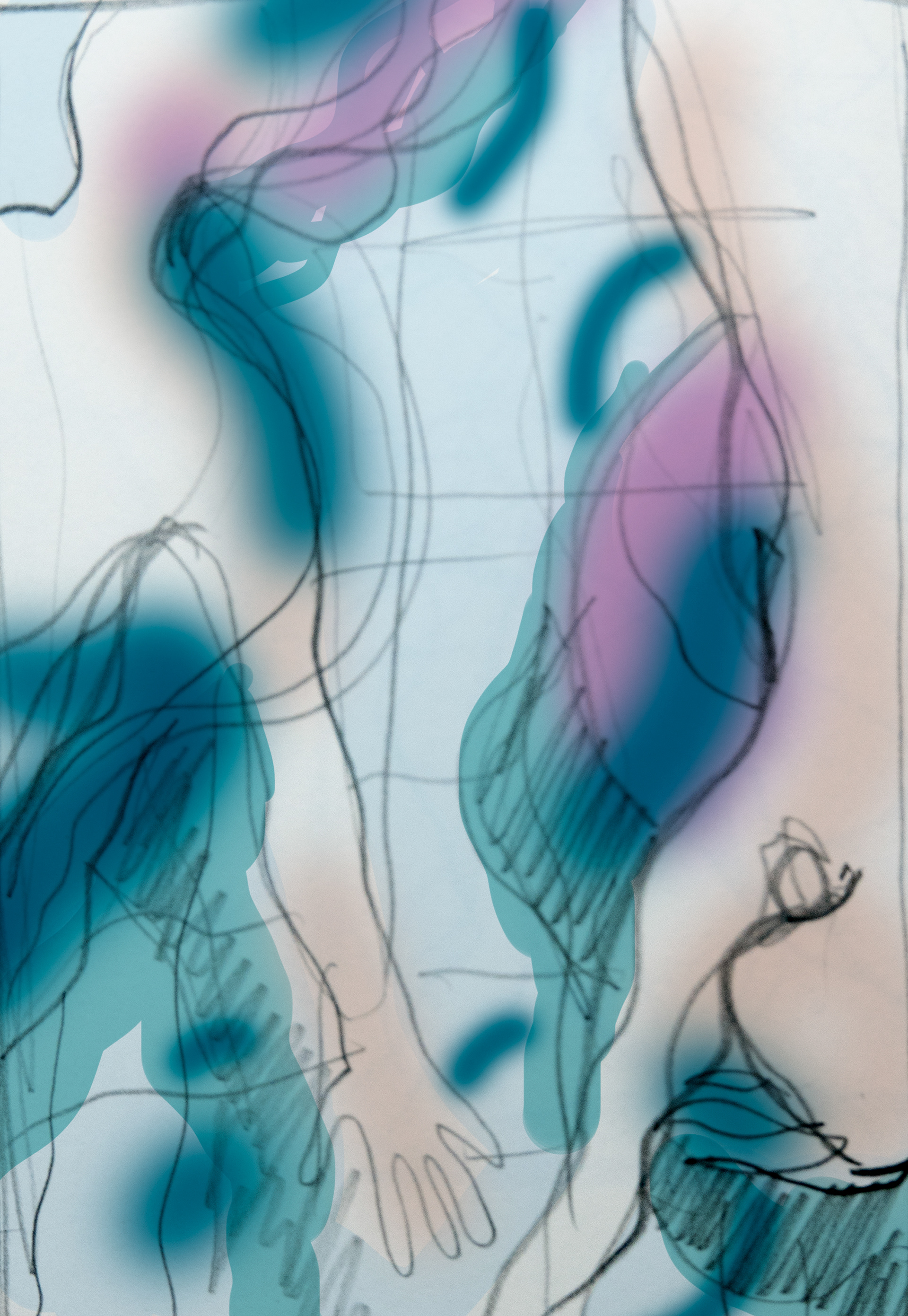 The opera's story is tightly connected with water: Galathea is a water nymph, Acis is a shepherd. In a new staging of the opera, Galathea becomes a flight attendant while Acis is a lifeguard on a beach. For the main visual Anna Gadetska, creative director of Open Opera, came up with the idea of a photoshoot in the water. Here are my sketches for the photoshoot. Above are style references, which feature David Hockney's paintings.