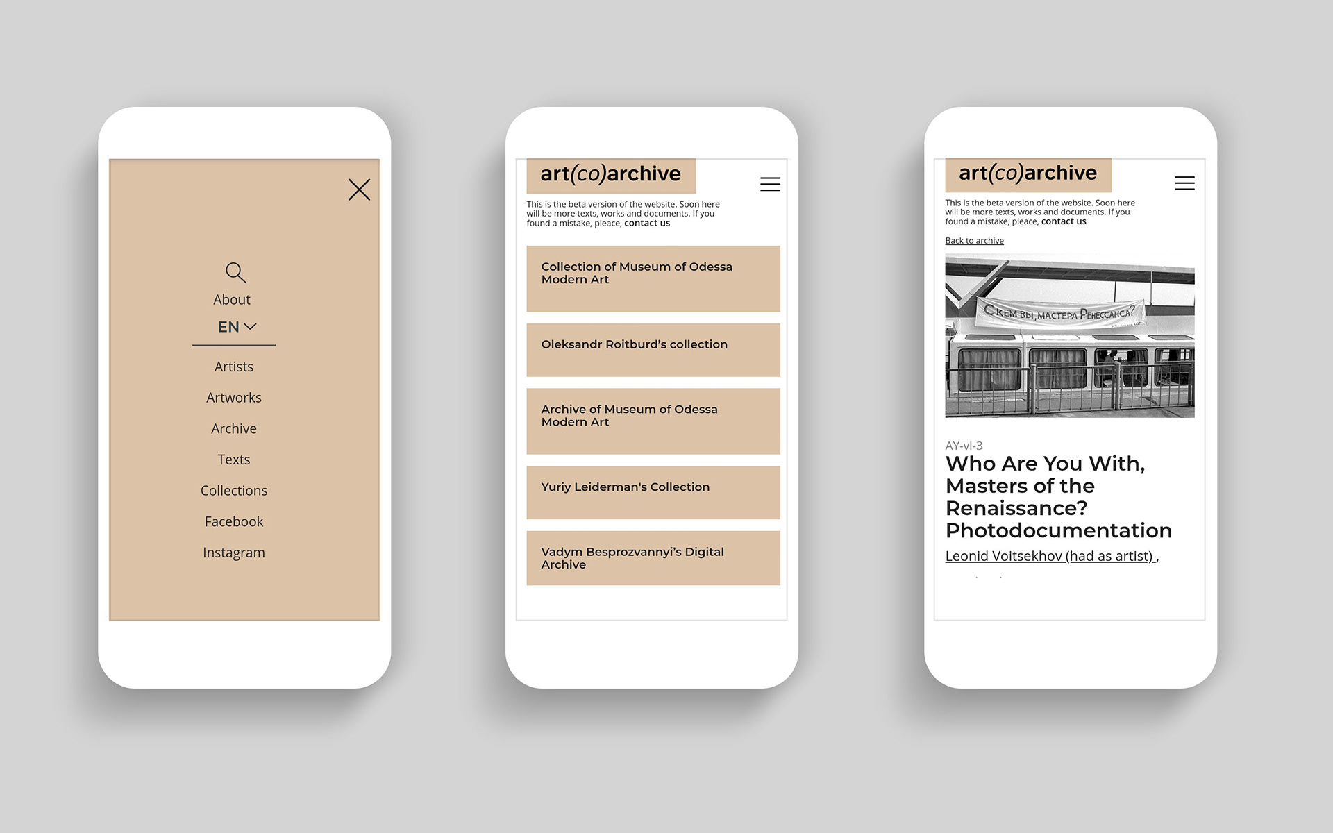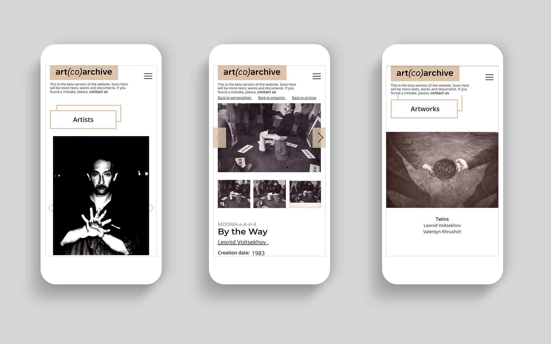As for the functioning of the art(co)archive resource, the authors have chosen the way of gradual disclosure of the MoOMA (Museum of Odesa's Modern Art) collections and some private collections. The first step would be the publication of archive documents and artworks related to the 1980s and the conceptual practices of Odesa artists. In addition to studies of the Odesa region and publication of the MoOMA materials, the authors of the project chose partnership and cooperation as the main strategies for the development of the resource. This explains the use of the prefix (co), which means association and partnership as the basis of work on the online archive.