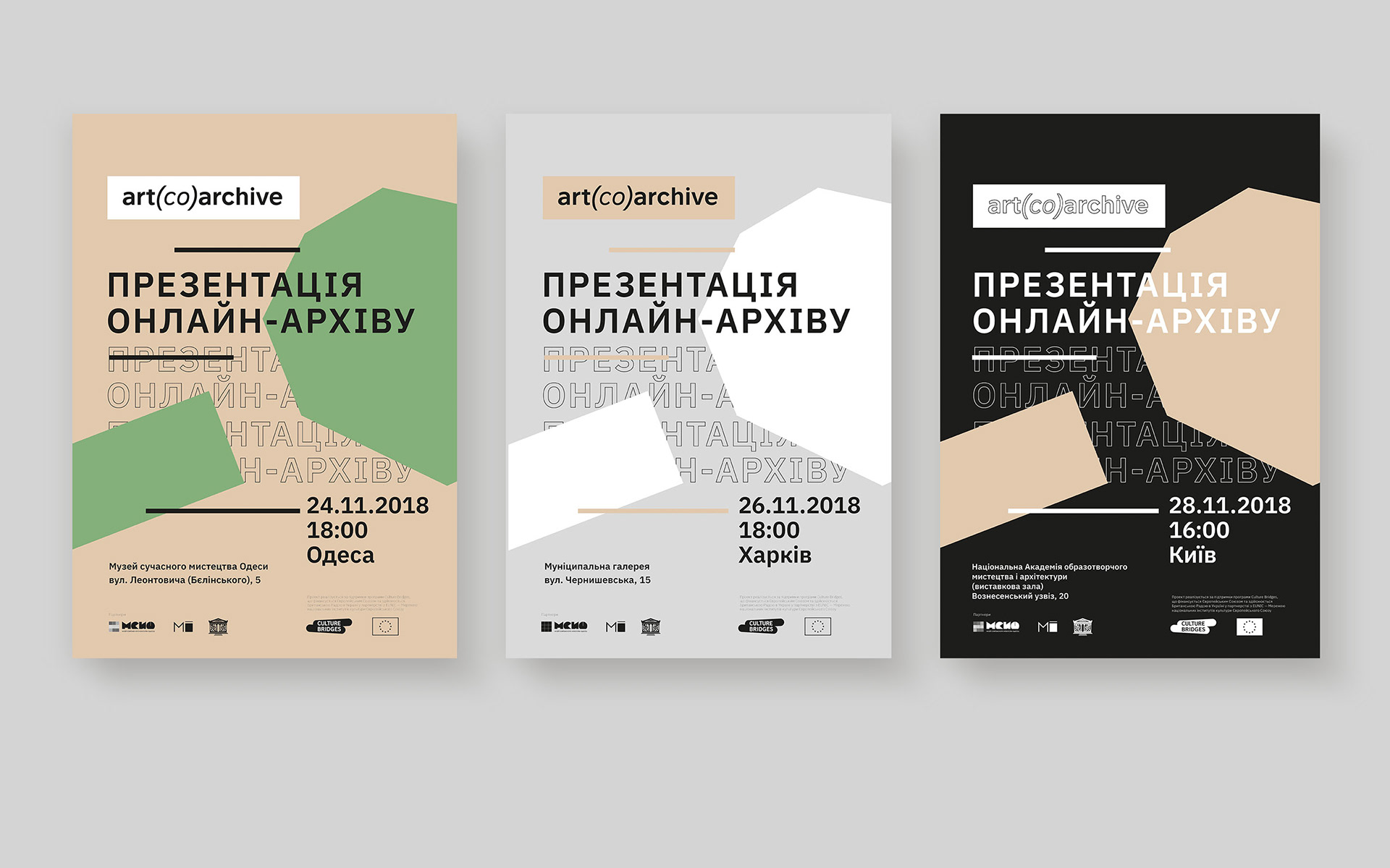 In contrast with the wide range of artworks represented, from paintings and drawings to photo documentation of performances, the design should maintain a regular structure and be minimalistic. Also, the project creators were willing to emphasize the "co" particle graphically to underline the importance of co-creation and co-working.